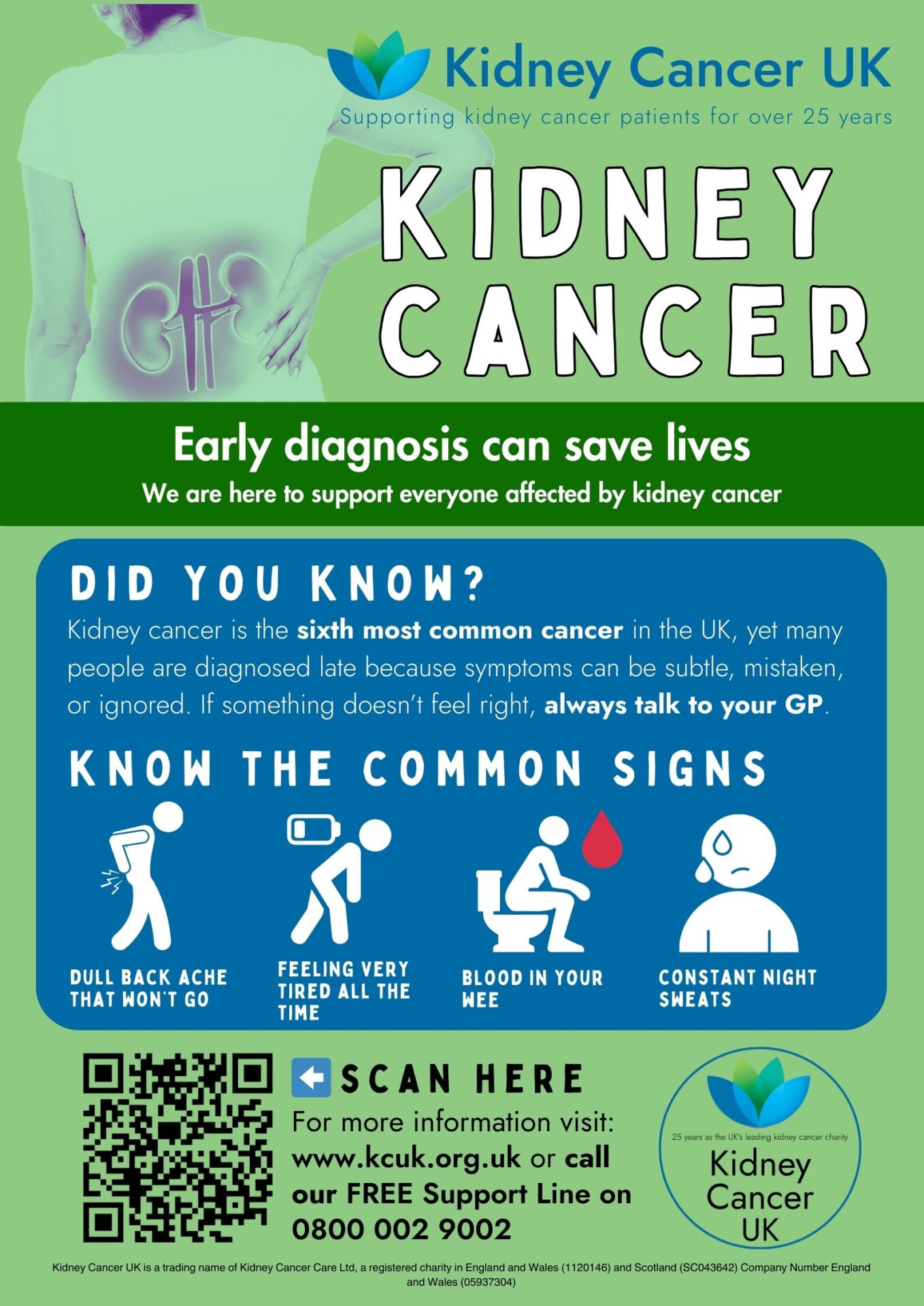 Download, print and share our kidney cancer awareness posters and display them in your local hospital, at work, or share online. Hover over the image, right click, then click ‘save image as’ and save to your computer. Open the image on your computer and print from there.